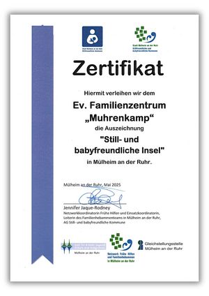 Unsere Kita wurde von der Stadt Mülheim an der Ruhr offiziell als „Still- und babyfreundliche Insel“ zertifiziert – und ist nun Teil eines stadtweiten Netzwerks, das jungen Familien unkomplizierte Unterstützung im Alltag bietet.